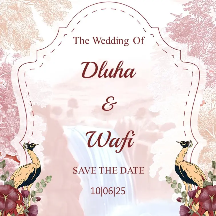 The Wedding of Dluha & Wafi Kepada Yth: Buka Undangan The Wedding of Dluha & Wafi 10 . 06 . 2025 “Dan di antara tanda-tanda (kebesaran)-Nya ialah Dia menciptakan pasangan-pasangan untukmu dari jenismu sendiri, agar kamu cenderung dan merasa tenteram kepadanya, dan Dia menjadikan di antaramu rasa kasih dan sayang. Sungguh, pada yang demikian itu […]