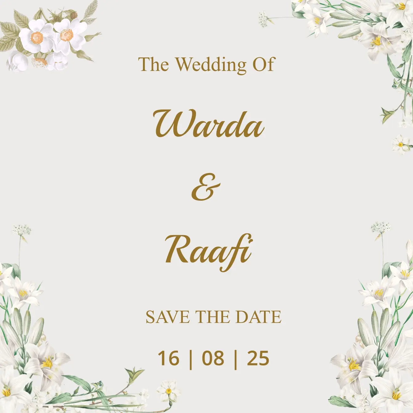 Save The Date Warda & Raafi kepada Buka Undangan Warda & Raafi Simpan di Kalender Assalamu’alaikum wr. wb. Segala Puji Bagi Allah SWT yang telah menjadikan hambanya hidup berpasang-pasangan. Dengan memohon Ridho, Rahmat, dan Berkah Allah SWT, kami bermaksud untuk mengundang Saudara/i dalam acara pernikahan yang kami selenggarakan. Count Down Hari Jam Menit Detik MENIKAH […]